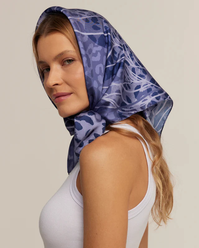 Lenço Majestosa Print future dusk em cetim de poliéster | 70x70cm
