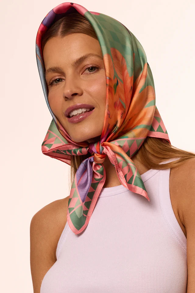 Lenço Toymanifesto Guardiã dos Portais em cetim de poliéster | 70x70cm